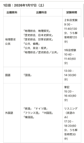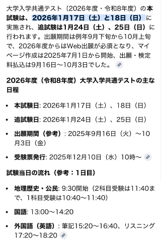 共テを受ける大半は10代から20代の若い方たちばかりなので若い力を充分に発揮して