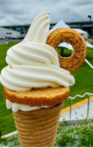 特盛ソフトにバウムクーヘンをブッ刺してガッツリ食べますw![]()