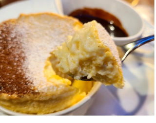 熱々のスフレやチョコパフェを食べて