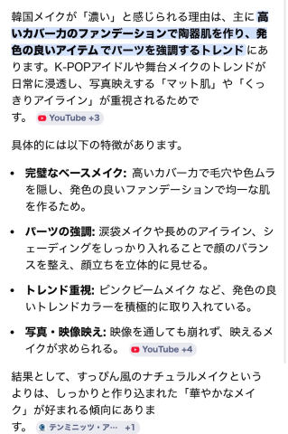 Googleで韓国メイクと日本メイクの違いを